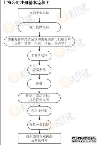 工商查名→开验资帐户→出验资报告→办理工商营业执照→刻公司章→办理组织机构代码证→办理税务登记证→开基本帐户→税务所购买发/票