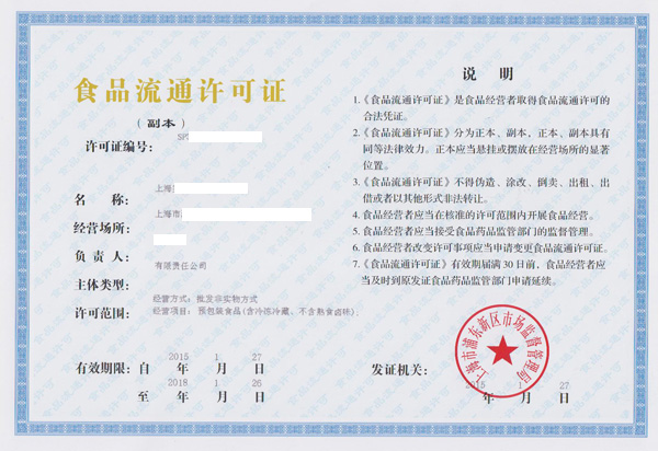 ? 首先:咨询后领取并填写《食品流通许可申请书》,同时准备相关材料;?其次:递交相关文书材料,材料齐全后,领取《接收材料凭证》或《受理通知书》后等待许可核准结果,需要现场核查的配合工商机关现场核查。最后:领取《准予许可通知书》,十日内凭通知书领取《食品流通许可证》。或直接领取许可证。