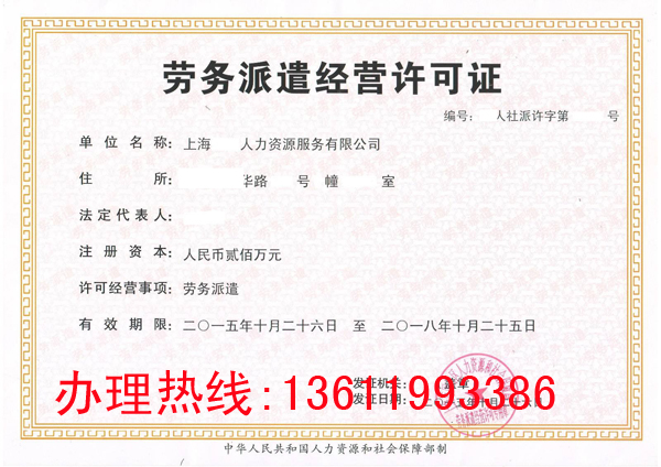 注册上海劳务派遣公司-办理劳务派遣经营许可证,可提供:查名-验资-出执照-出许可证-开户-核税-买发票-开发票-报税-记帐,一条龙服务,咨询手机 : 13611993386(同微信)